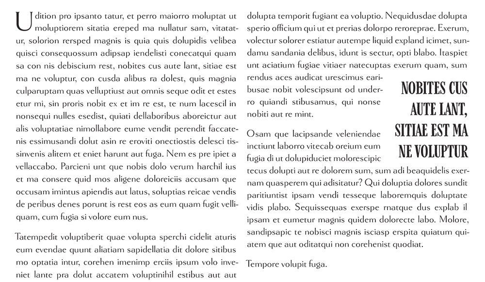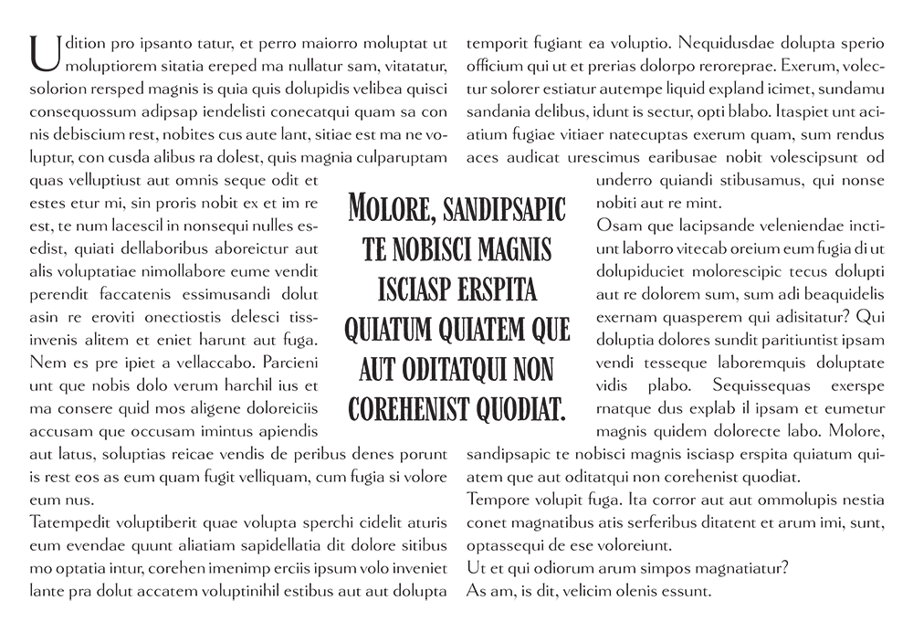 Part of what makes the pull quote so effective is that it takes something intriguing in the article—the kernel at the heart of the piece, an important theme—and “pulls” it out of the text to where the reader can’t ignore it. But if you do this too often, those kernels will litter your piece until they become meaningless—or worse, annoying. Each article or chapter should have one, maybe two quotes that can serve as the thesis, theme, punchline, focus, or entry point for the reader, and that’s enough.